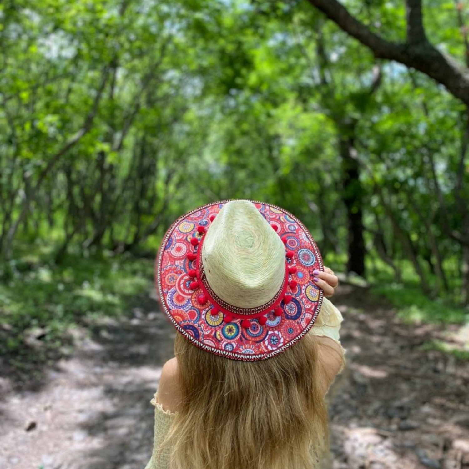 Sombrero de Palma Fina forrado de tela para dama hecho por artesanos en el estado de Michoacán.